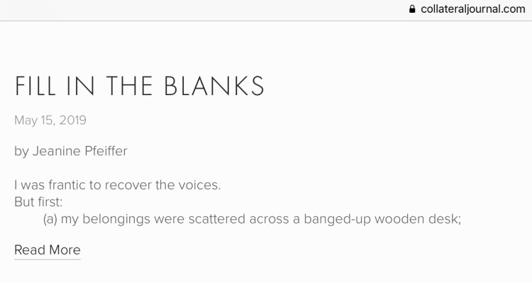 My recent essay “Fill in the Blanks” published this month in Collateral, tells the story of weeks spent as a citizen-translator-horrified traveler in the middle of a war zone.