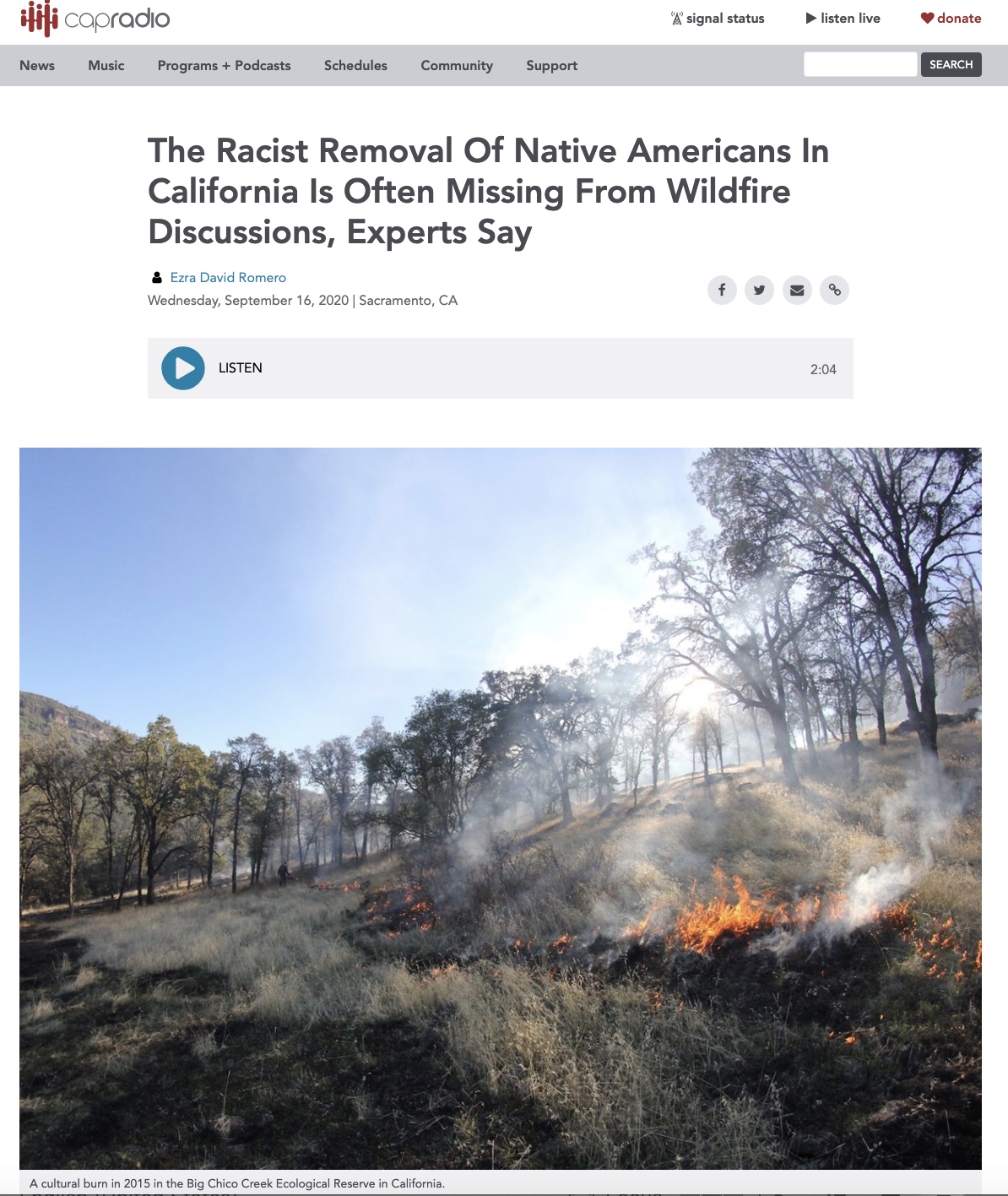 This week, another piece on the importance of indigenous fire knowledge and techniques went live online. I’m thrilled, because after working on this article for weeks, it appeared in Slate, a news magazine that usually carries more popular culture pieces. Even more exciting: the preponderance of news articles on cultural burning has risen exponentially this year: with reports appearing in The Guardian, CNN, Nature, WBUR, and in university news for Stanford and the University of California.