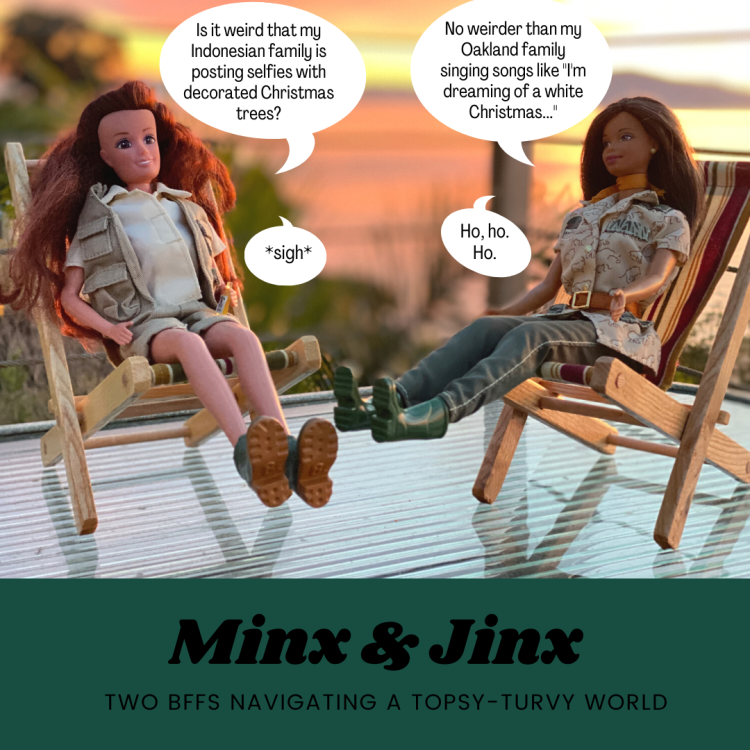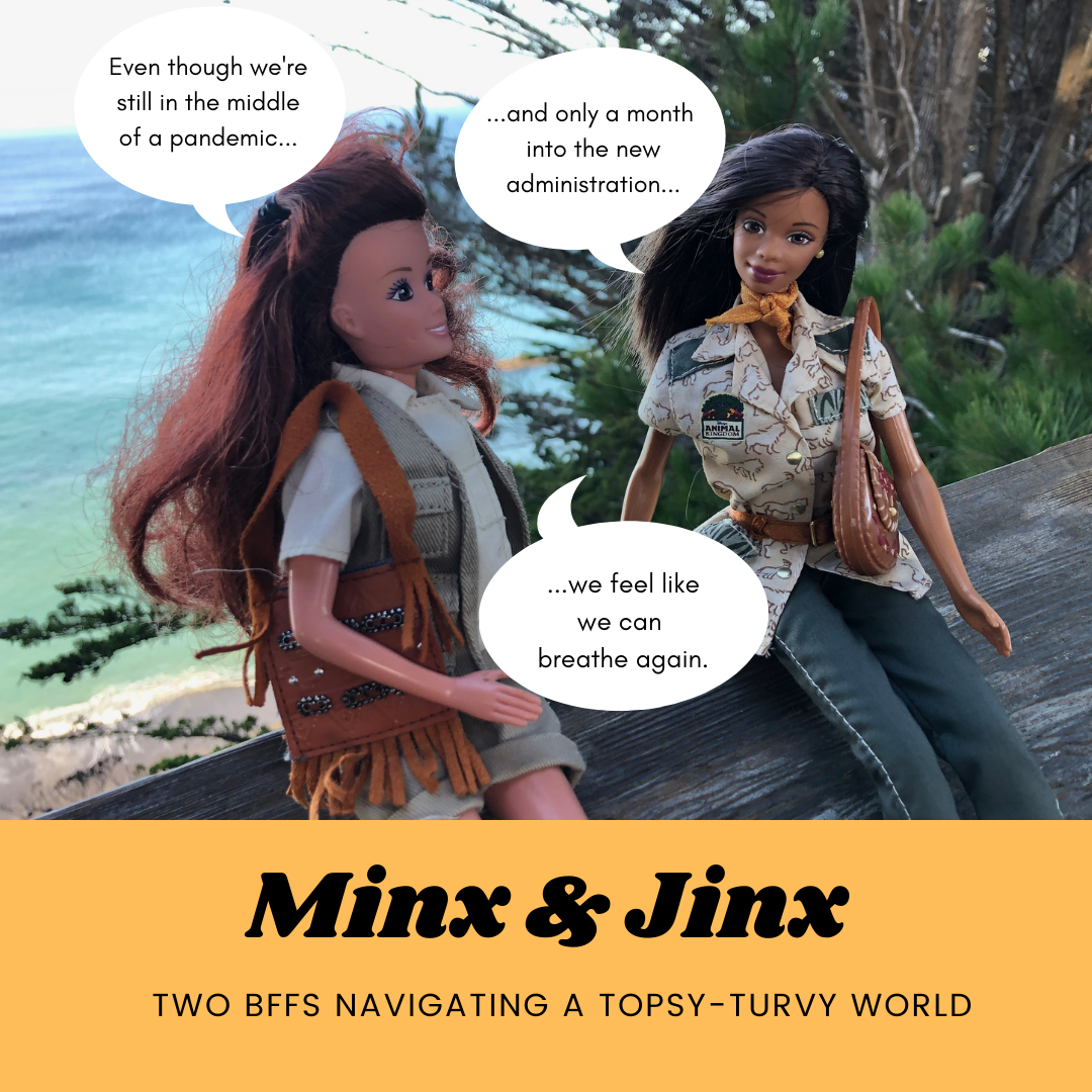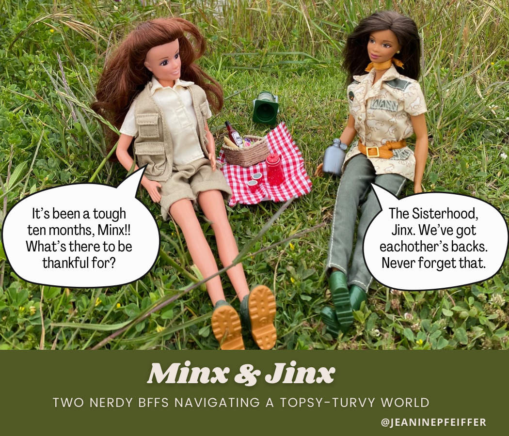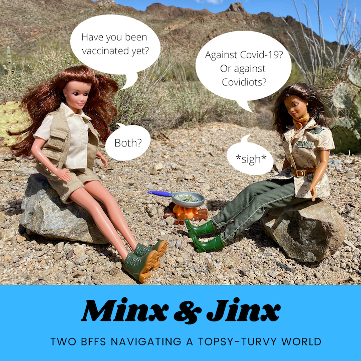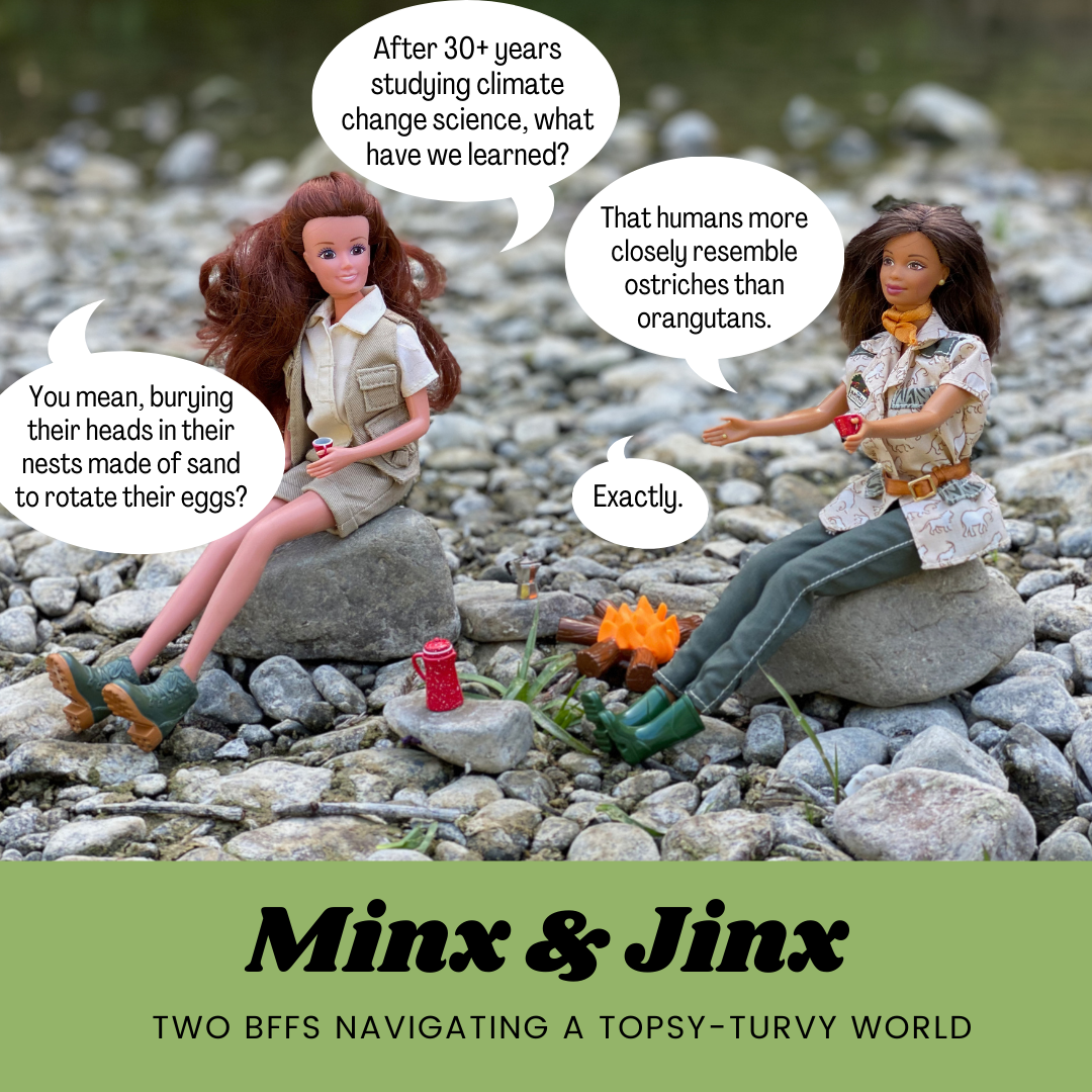 Minx and Jinx are a product of my imagination + vintage Barbies + a ton of teeny tiny accessories sourced through Etsy. Their basic backstory is that they represent two California-based field researchers with PhDs in the environmental sciences who met at a National Science Foundation Women in Biology symposium on the West Coast in the early 2000s and have been buddies ever since.